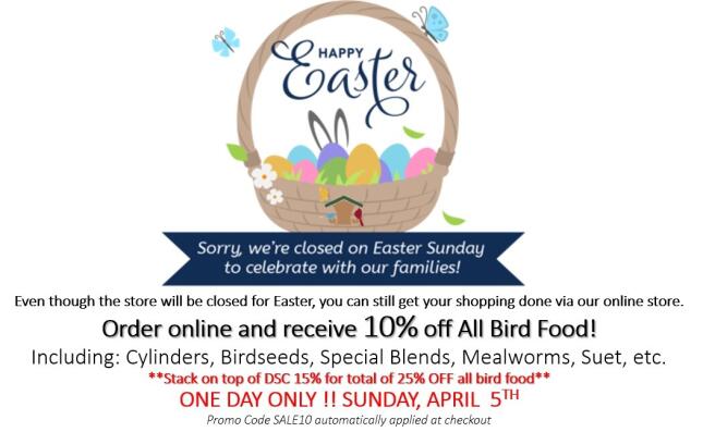 **Stack on top of DSC 15% for total of 25% OFF all bird food**