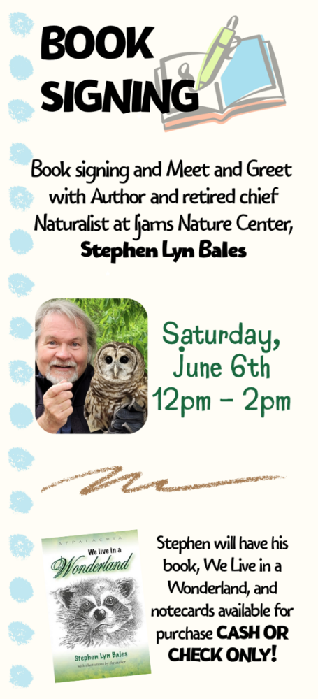 We're excited to host a book signing and meet & greet with local naturalist, author, and WBUniversity professor, Stephen Lyn Bales. Stop by and meet Stephen, chat about nature and wildlife in our area, and have your book signed. It's a great event for anyone who loves learning more about the birds and wildlife in our area!